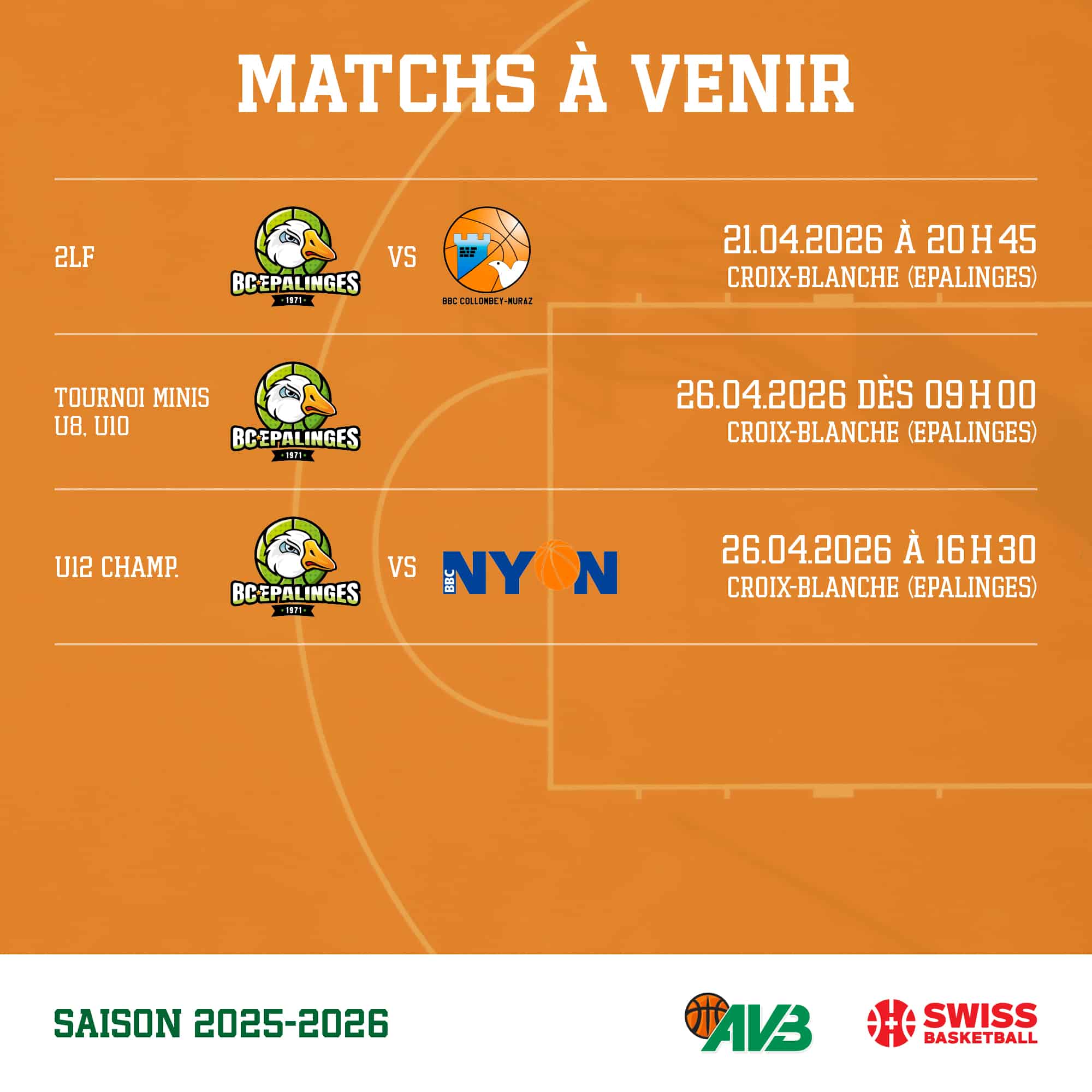 Matchs à domicile semaine du 20 avril